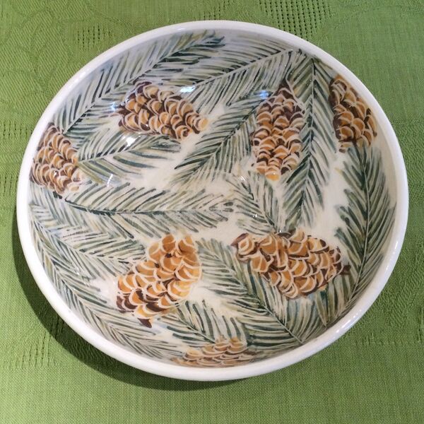 My third hire of the pop-up shop at the National Trust property Lytes Cary Manor, Somerset was a collection of pottery continuing the inspiration of trees, leaves, seeds, flowers and plants. The theme: Woodland, a display of artwork including some ceramic pieces accompanied by a wooden plinth, box, tray or mat in the wood described in the decorative pattern on the clay. Watercolour paintings, linocut cards and etchings were also included following the success of the previous displays Inspired by Nature and the Land September 20th to October 6th and Midwinter November 14th November to 1st December 2024.